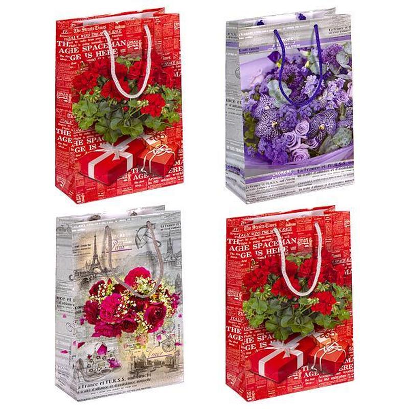 Пакет подарочный цветочный микс 27х16х7см арт.3012