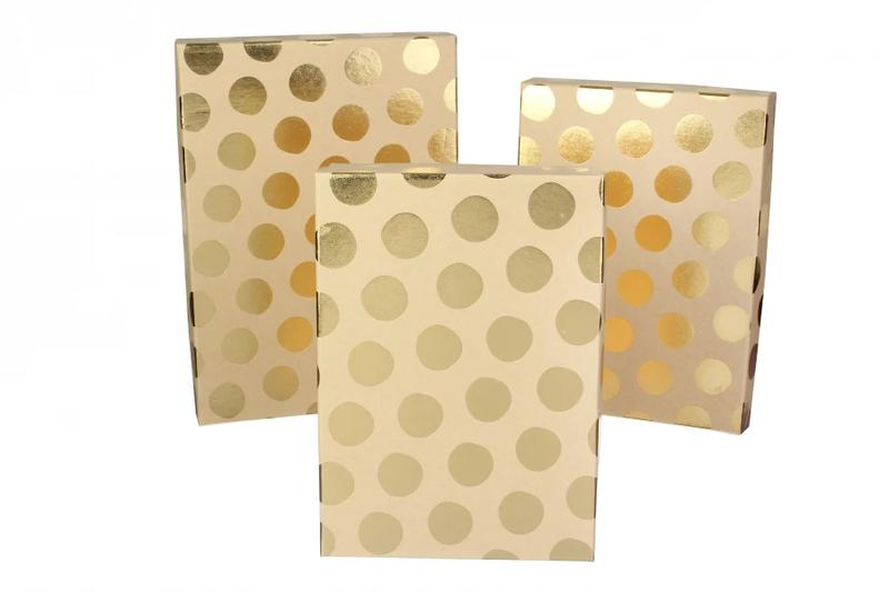 Подарочные коробки золотые в горошек, разм.l: 33*23.5*9 см (комплект 3 шт)