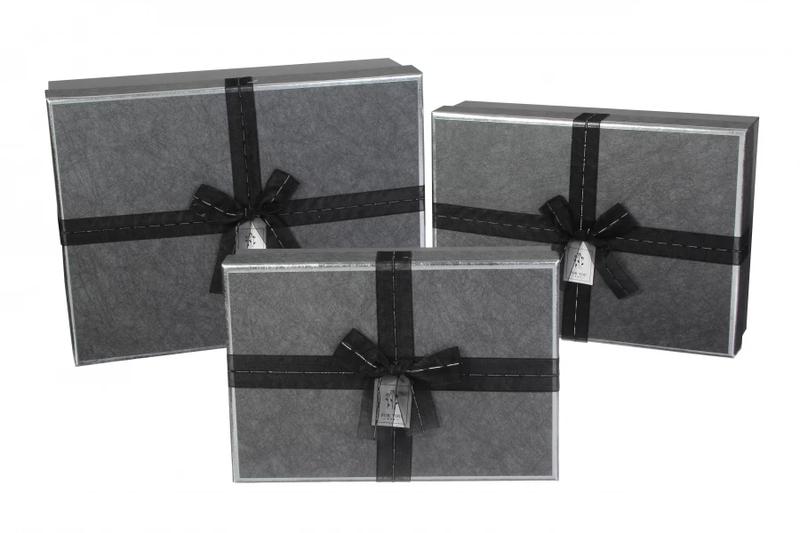 Подарочные коробки черные с бантом, разм.l:33.5*25*11.5 см (комплект 3 шт)