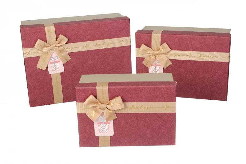 Подарочные коробки красные с бантом, разм.l:29.5*22.5*13 см (комплект 3 шт)