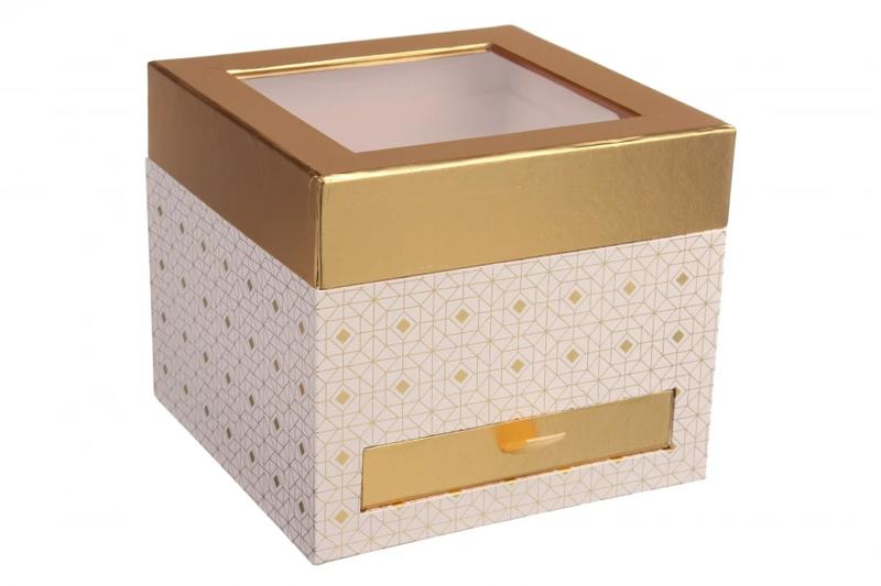 Подарочная коробка с прозрачной крышкой и ящичком, размер 19х19х16,5 см розовая