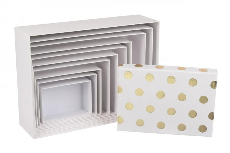 Подарочные коробки белые в горошек прямоугольные, разм.l: 37*27*11 (комплект 10 шт)