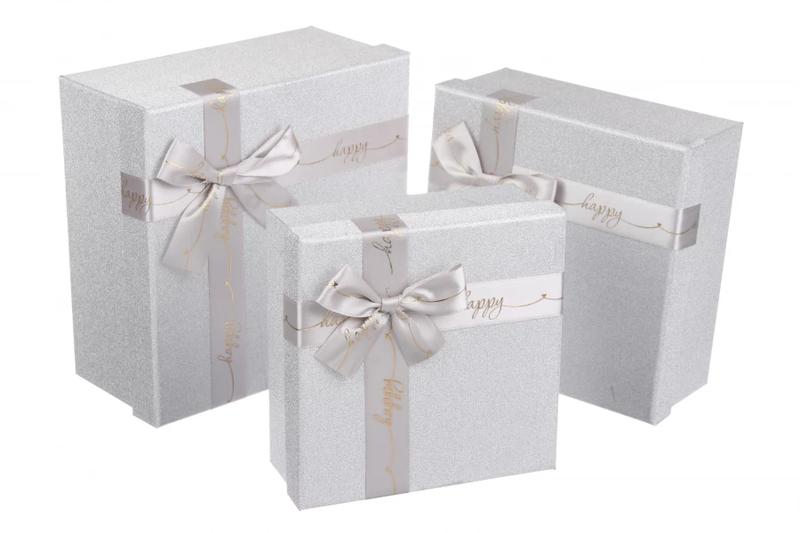 Подарочные коробки квадратные серые с бантом (комплект 3 шт), разм.l: 19.5*19.5*9.5