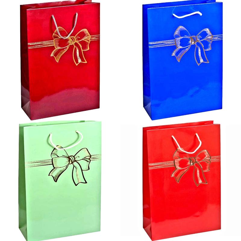 Пакет подарочный большой "Бант" вертикальный . Материал макета: Глянцевый, картонный. Ручки ручки у пакета: шнурок. Размер подарочного пакета: 35×24х10 см. Цвета пакетиков: на фото