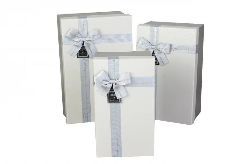 Подарочные коробки серые с бантом, разм.l:32х21х13,5 см (комплект 3 шт)