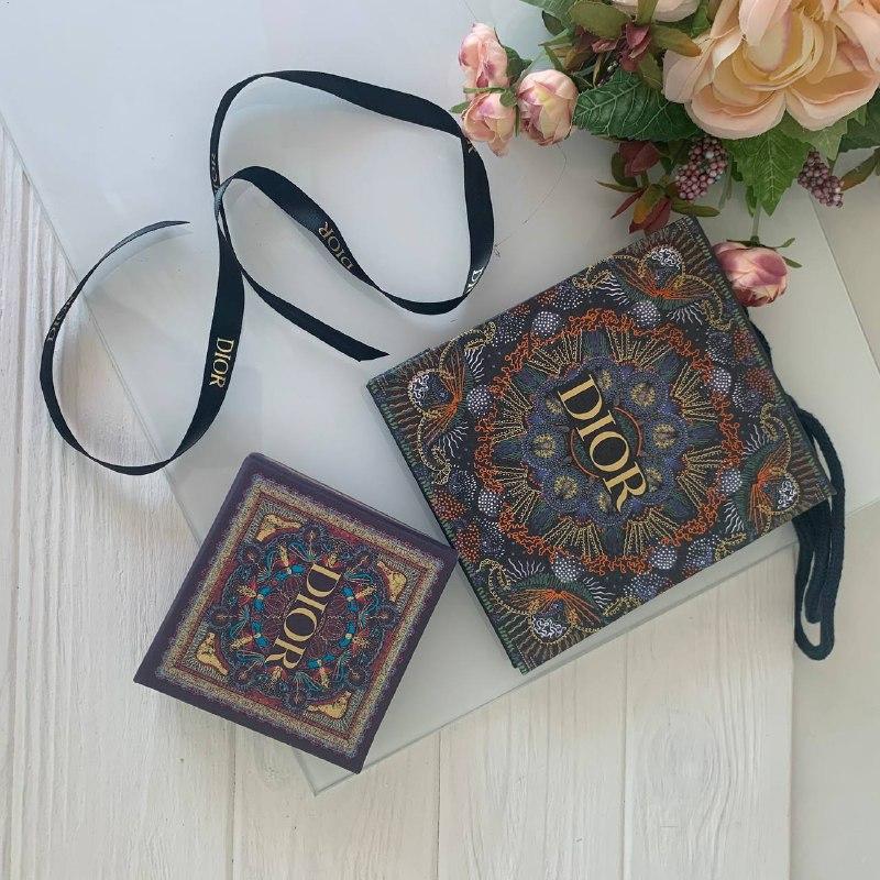 Набор брендовой упаковки люкс Dior в который входит: коробка, пакет и ленточка. Все составляющие содержат брендовую надпись с качественной печатью Dior. Вместится практически всё, что вы пожелаете. На ленточке вышиты надписи Dior. Гламурный узор со знаковым дизайном на пакете и коробке привлекает внимание и никого не оставит равнодушным.
