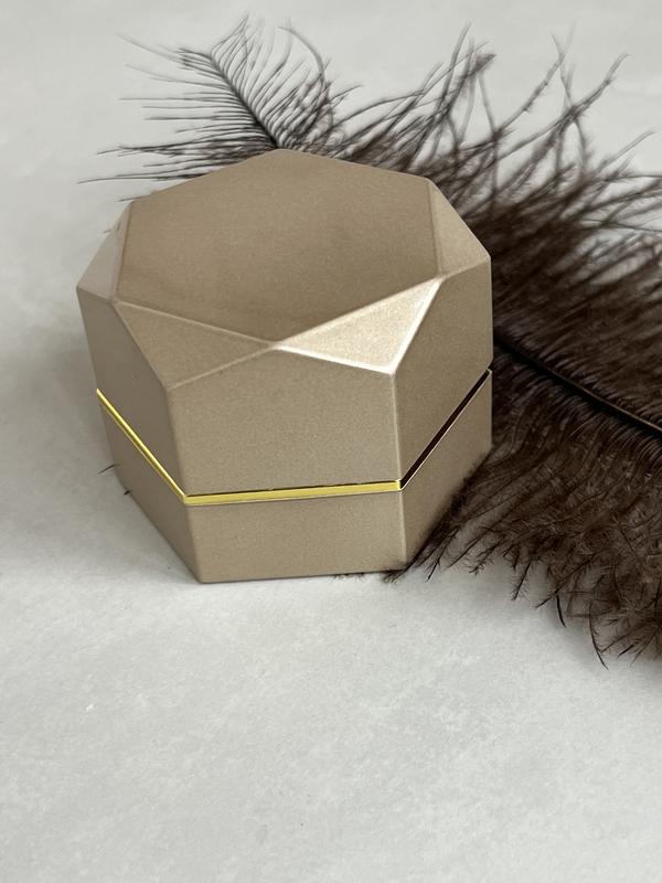 Вишуканий стильний дизайн ювелірного футляру для каблучки. матеріл :пластик золотого кольору в середині :чорний оксамит Для додаткових фото і відео звертайтесь за номером +38**********