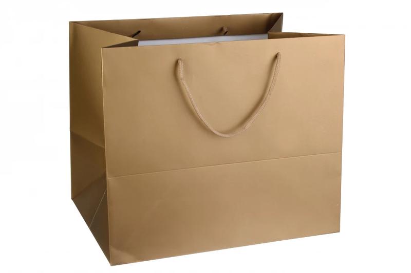 Пакет картонный горизонтальный золотистый 31*37*26см 210г/м² (упаковка 12 шт)