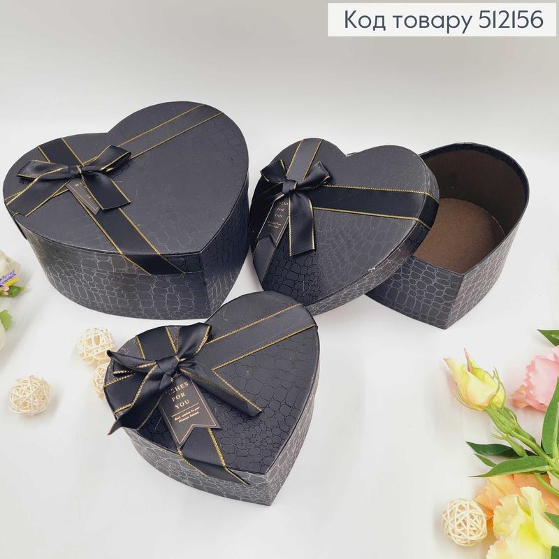 Набір коробок, сердце, чорні з стрічкою, імітація шкіри, 3шт(15х13х6см, 18х15х7см, 21х18х9...