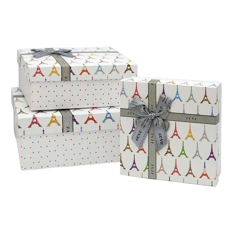 Мы хотим помочь вам максимально дополнить свой ассортимент упаковки необычных подарков, поэтому предлагаем вам купить подарочную коробку КП-2.3(набор 7шт), в набор входит 7 коробок разных размеров. Интернет магазин Карнавал Приколов предлагает преобрестинабор подарочных коробок разного размера, который станет незаменимым атрибутом в праздничные дни и увеличит средний чек заказа. Ведь для любого подарка нужна упаковка. Разве не прекрасно, когда все можно купить в одном месте? Подарочная коробка формата крышка-дно, с внешней стороны оформленная в современном стиле, изысканным рисунком эйфелевых башень на крышке, украшенной серебряной лентой с пышным бантом и разноцветным горошком на дне, внутренней в белый цвет. Материал изготовления – многослойный мелованный картон плотностью 235 гр/м2. Подарочные коробки - подходят не только для упаковки подарка. Но и своего рода являются самим подарком. Куда в дальнейшем можно будет складывать разные безделушки. Так же подходят для создания из живых цветов композиций. Стильные и нежные коробочки идеально подойдут для дизайна интерьера, а также для хранения ваших вещей-мелочей. Будет идеальным дополнением оригинального подарка девушке, маме, жене.