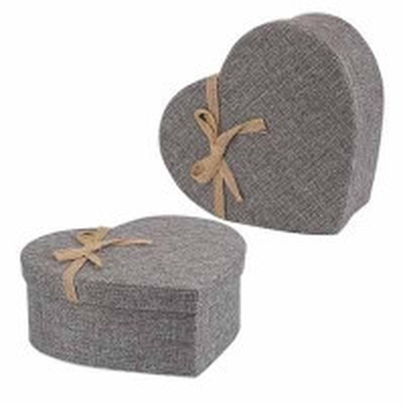 Подарочная коробка упаковка подарка картонная сердце бантиком 34*30*14см серое плотная тка...
