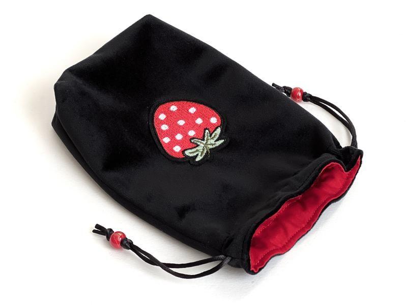 Оригинальный мешочек с аппликацией-вышивкой клубничка. Мешочек изготовлен из плотного велюра черного цвета, подкладка из сатина, затягивается атласным шнуром с бусинами. Мешочек станет удобным и оригинальным местом для хранения ваших карт, рун или кристаллов, а также отличным мешочком для подарка. Мешочек рассчитан для стандартных колод карт Таро размером. Размер мешочка: 9 см x 4 см (ширина дна) х 17 см или 13см х 17см полный размер