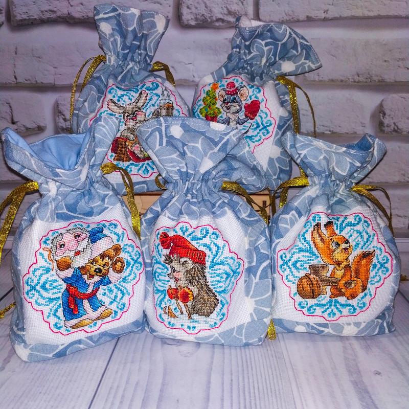 Мешочки для сладостей/конфет или небольших подарков. Выполнены из хлопка. На подкладе. Украшены ручной вышивкой крестиком. Многоразовые. После целевого использования (упаковки подарка) возможно использовать как мешочки для хранения мелких игрушек, украшений и т.п. Размер каждого 23х18 см Мешочки в наличии и готовы к отправке. Реальные цвета могут отличаться от изображения на других мониторах. Свяжитесь со мной, пожалуйста, если у вас возникнут вопросы. С наилучшими пожеланиями, Евгения.