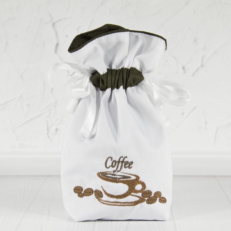 Мешочек для хранения кофе / подарочный с завязками / вышивка машинная - чашка кофе/ пп"све...