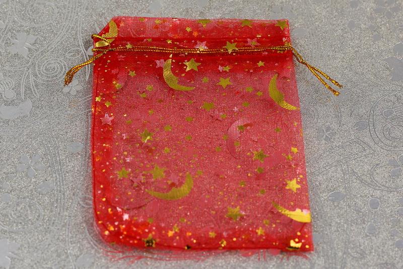 Мешочек из органзы красный месяц со звездами длина 12 см ширина 8 см