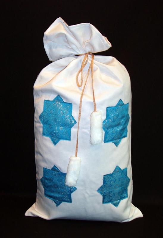Мешок св.николая/деда мороза (85х48 см) звёздно-бирюзовый белый