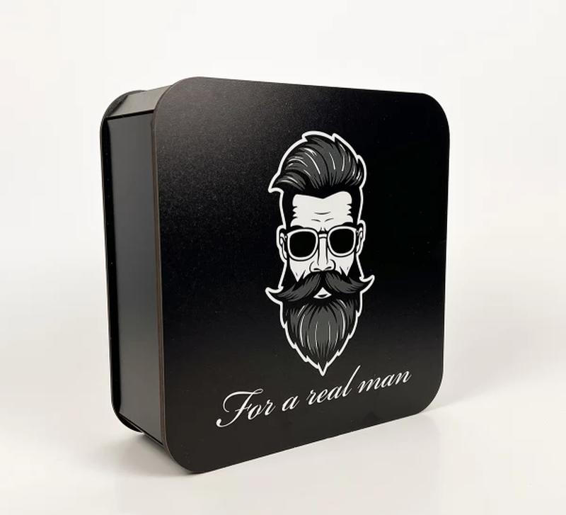 Подарочная коробка квадратная черная "For a real man" Деревянная коробка предназначена для оформления оригинального подарка, составления букета или композиции из фруктов, овощей, мыла, сладостей. Изготовлен из высококачественного экологического материала, ДВП толщиной 3 мм, поэтому долго будет сохранять свой безупречный вид.