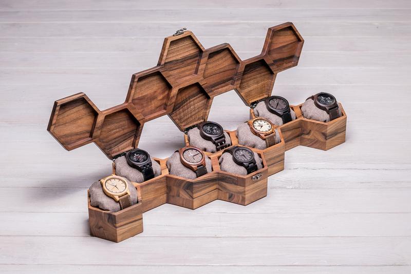 EB-16.8.2 Сотовая шкатулка для 8 часов с деревянной крышкой Представляем Вашему вниманию новые премиальные шкатулки для хранения на подушечках наручных часов. Комбинация из пчелиных сот в зависимости от количества ячеек делает изделие новым, уникальным и необычным органайзером среди нашего ассортимента. Данные коробочки разработаны в различной конфигурации (от 1 пары часов до 10). Древесина грецкого ореха придает изделию премиальный внешний вид, качественная металлическая фурнитура грамотно подобрана под размер самого изделия и добавляет элегантности данным шкатулкам. Благодаря использованию эксклюзивной древесины, металлических (а не пластиковых) креплений, дорогой ткани и натуральных масел это изделие будет очень ценным и стоящим подарком для любого человека, кому важен комфорт и порядок в личном пространстве. В зависимости от количества ячеек коробочки комплектуются подушечками для часов из приятной на ощупь ткани и качественных материалов, что делает изделие долговечным и удобным в использовании. В отличии от других шкатулок нашего производства, в сотовых шкатулках крышка фиксируется вертикально, что также является уникальной особенностью этих изделий. Внутренний размер ячейки: 80 мм между параллельными ребрами шестигранника, 67 мм - высота ячейки. Этого более чем достаточно даже для самых массивных часов, поэтому они точно не будут упираться в крышку шкатулки. В нашем ассортименте также представлены идентичные коробочки со стеклянной крышкой. Размер в зависимости от количества ячеек: 8 - 597х188х73 мм; Изделие продается в аккуратной картонной коробке, пригодной для вторичной переработки. По желанию клиента мы можем выгравировать Ваши инициалы, любимую цитату или логотип компании в любом месте на нашем продукте (и на дереве, и на стекле) или даже изменить его конструкцию по Вашему запросу. Кроме этого, мы обернем Ваш заказ в подарочную упаковку или вложим поздравительную открытку с Вашим сообщением, если Вы нас об этом попросите. Обратите внимание: цвет Вашего продукта может незначительно отличаться от изображения, поскольку каждое изделие имеет индивидуальные и уникальные характеристики и особенности древесины. Ежедневно отправляем заказы Укрпочтой (бесплатно от 1000 грн) или Новой Почтой (бесплатно от 2000 грн). Материал: высококачественная обработанная древесина грецкого ореха, пропитанная натуральным маслом. Сделано в Украине по всем стандартам eco- продукции.