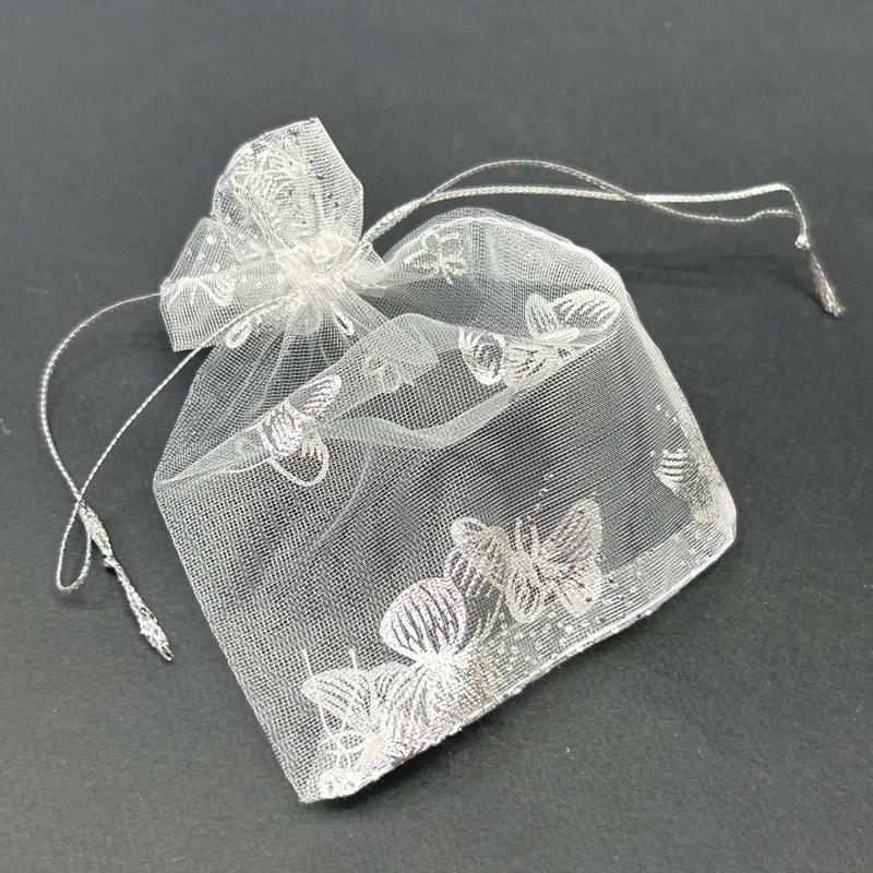 Мешочек подарочный из органзы 8,5х12 см - белый с серебром