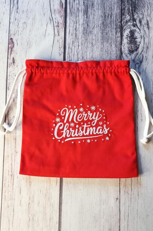 Мешочек для подарков, праздничный мешочек для подарков с вышивкой merry christmas, красный