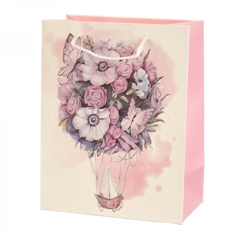 Пусть Ваши подарки будут яркие, как внутренне так и внешне. Этот букетик будет украшением к данному подарку. Характеристики: Тип: пакет Материал: картон Размер: 12х26х32 см Цвет: розовый Ручки: белого цвета