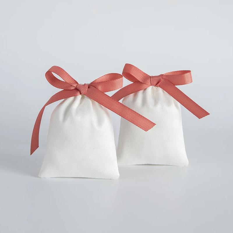 10 штук мешочки для украшения рукоделия качественные подарочные пакеты органайзер для украшений бархатные белые мешочки с бантиком 5х7 см упаковка 10 штук - 120 грн