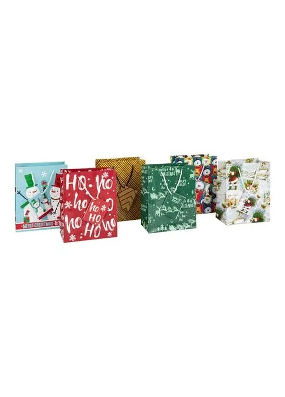 Набор новогодних подарочных пакетов 22х17х9 см 6 шт. комбинировок crelando
