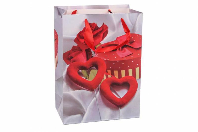 Подарочные пакеты "red heart" (м) 32*26*10 см (упаковка 12 шт)