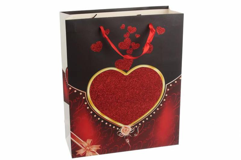 Подарочные пакеты "сердца" с глиттером (l) 40*30*12 см (упаковка 12 шт)