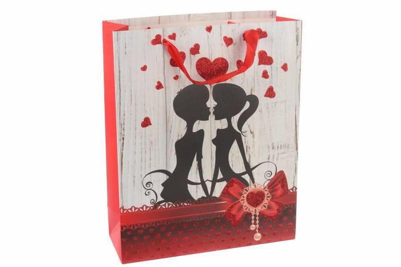 Подарочные пакеты "влюбленные"(м) 32*26*10 см (упаковка 12 шт)