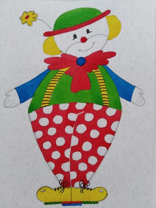 Открытка ручной работы! Размер 10 см на 14,5 см. Специальная бумага для дизайна, краски для батика. Также можно использовать как пригласительный на праздник, день рождение. Таких как на 1 фото- в наличии 9 шт, все одинаковые, только шляпка у клоуна бывает двух цветов: зелёная и синяя. Таких как на фото 5,6- одна штука. Каждая открытка нарисована, не печать. Кропотливая работа, эксклюзивный товар! Отличный вариант для подарка и для праздников! Цена в объявлении указана за одну шт.