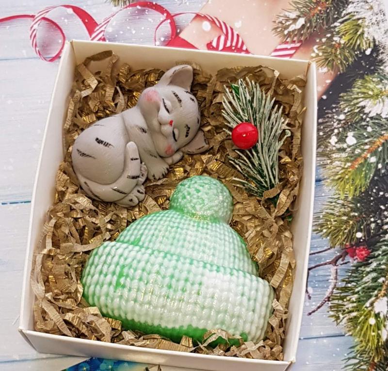 Сувенирное мыло набор "котик и вязаная шапочка"