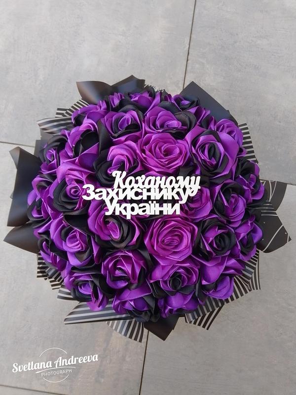 Возможно исполнение под заказ по вашему желанию 100% ручная работа Фиолово-черный букет в наличии Надпись можно изменить или вообще убрать Обращайтесь с удовольствием ответьте на все вопросы Упаковка за мой счет