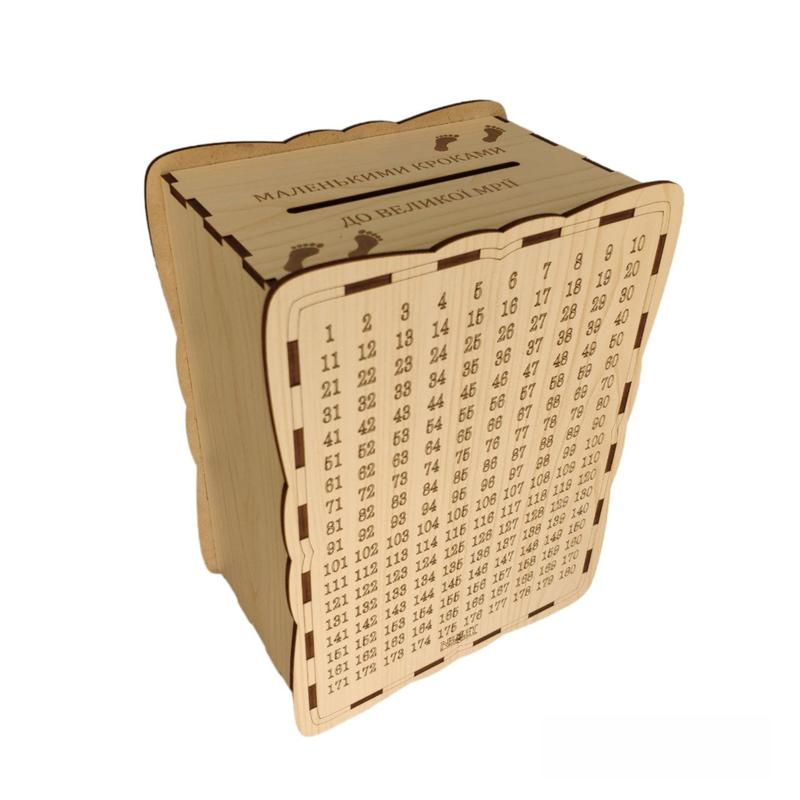 Копилка из Tik Tok на 365 дней - это не просто развлечение, а инструмент, чтобы сэкономить на будущее. Идея состоит в том, чтобы каждый день класть в ящик деньги, равные номеру дня. Это означает, что в первый день нужно положить 1 гривну, во второй день - 2 гривны, в третий день - 3 гривны и так далее. За 365 дней вы соберете 66795 гривен! И это достаточно немного денег каждый день, чтобы сэкономить значительную сумму на конец года. Эта копилка сделана из качественного материала, имеет симпатичный и необычный дизайн. Также ее можно использовать как элемент интерьера в комнате или офисе. Она подходит как для детей, так и для взрослых. Это отличный подарок для тех, кто планирует сэкономить на будущее, а также для тех, кто хочет сделать что-нибудь интересное и нетипичное. Копилка из Tik Tok - это отличный способ показать, что вы цените деньги и планируете свое будущее. Она может стать идеальным подарком на День рождения, Рождество или любой другой праздник. Дни можно зачеркивать маркером на водной основе, которая с поверхности материала легко стирается. Собрана без клея, что позволяет осторожно разобрать ее когда придет время. Размеры: - Высота 20,5 см - Ширина - 15 см - Длина - 10 см Материал - ХДФ