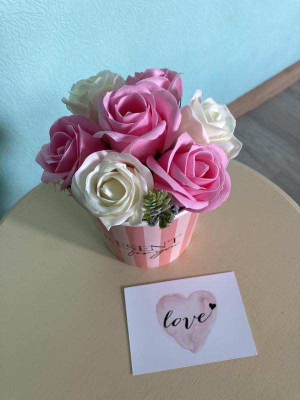 💜Хотите удивить своих родных и близких?💜 🌸Букетик мыльных цветов - лучший вариант! 🌷Оригинальный подарок, который будет радовать до 5 лет. 🌿Цветы не требуют специального ухода! 🌿Выглядят как настоящие! 🌿Дарят прекрасный аромат! ⭐️Размер: 17*16 см ⭐️Стоимость - 290 грн⭐️ ⭐️Можем добавить открытку и подписать +20 грн к стоимости букетика. ✅Отправлю любой почтой!) ⭐️В г.Днепр можно забрать самовывозом)