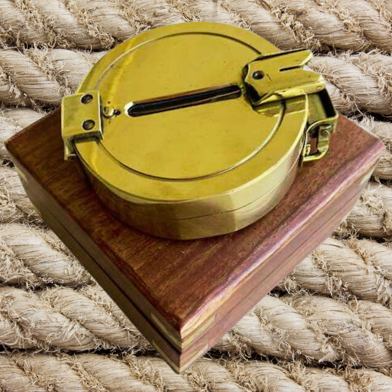 Компас клинометр бронзовый в деревянной шкатулке 10 см