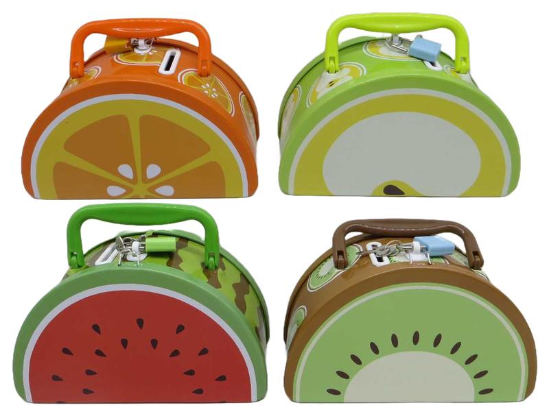 Копилка металлическая фрукты 16*9,2см, 4 вида, s-157
