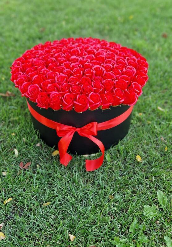 Букет який не зав'яне роками! Ці квіти зроблені з мильної основи, завдяки цьому виглядають максимально реалістично! Колір троянд може бути за Вашим бажанням!