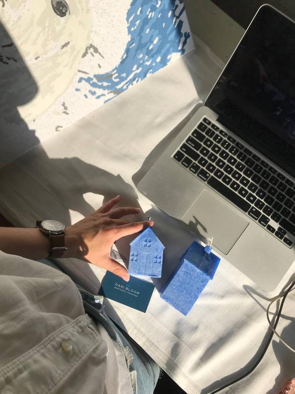 свечи бренда DARI.BLOOM цвет: синий набор из двух: малого и большого состав: пальмовый воск горит от 30 до 45 часов