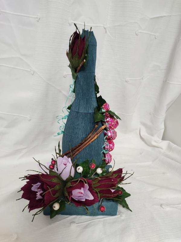 Декорированная бутылка " Фраголино Бьянко". Гроздь винограда из конфет " Графиня вишенка" .Цветы с конфетами " Трюфель клубничный". Делаю букеты из конфет под заказ. Ручная работа.
