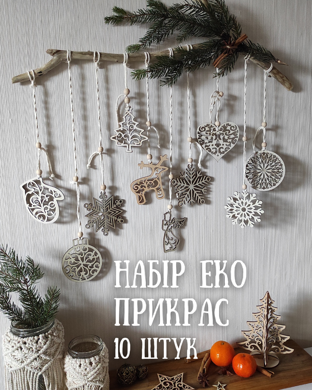 🌲Этот очень классный набор украшений изготовлен из натуральных материалов – дерево и хлопковые нити. В комплекте 10 украшений + открытка. 🏷️Стоимость набора - 500 грн Упаковваю в красивую подарочную упаковку с прозрачным верхом. В коробке украшения сложены на деревянной стружке. Можно приобрести украшения без подарочной упаковки, стоимость - 435 грн Можно подобрать еще ветку, похожую на ту, которая на первом фото. Стоимость +150 грн Такие украшения ✨ станут отличным подарком ✨ безопасны для детей ✨ смогут добавить эстетики и уюта дома Сделайте подарок себе, родным и близким 🤗 Есть разные варианты нитей, которые крепятся к игрушкам: ✅ белая с деревянными бусинами ✅ черно-белая с деревянными бусинами ✅ белая с золотом золотыми бусинами ✅ джутовая с деревянными бусинами Можно подобрать разные цвета нити