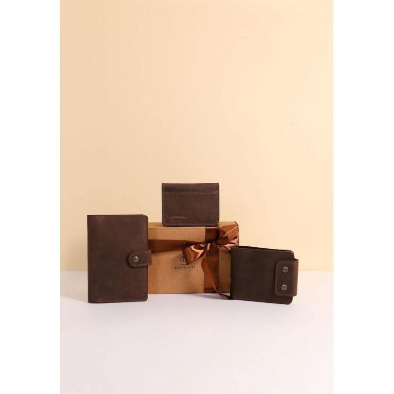 Как часто при выборе подарка мы мечемся из магазина в магазин, перерываем тонны информации на сайтах в поисках достойного подарка для друга, коллеги или члена семьи. Чтобы сделать вашу жизнь проще, а выбор подарков не утомительным, мастерская BlankNote создала подарочные наборы из самых необходимых предметов в повседневной жизни. Мы подобрали изделия, которые дополняют друг друга по функционалу, стилю, а также цветовой гамме. В подарочный Набор аксессуаров "Лион" входит: Мужское кожаное портмоне Zeus 9.0 темно-коричневое (BN-PM-9-o) Стильное компактное портмоне. Два отделения для купюр, отделение для карт и монетница. Обложка на паспорт 3.0 Стильная и функциональная обложка для паспорта, в которой поместится не только паспорт, а и пластиковые карты, или например, водительские права. Кожаная обложка для ID-паспорта и водительских прав 4.0 темно-коричневая (BN-KK-4-o) . Удобный кард-кейс для хранения документов, которые необходимо время от времени демонстрировать: водительские права, пропускной для работы, студенческий, ученический, проездной на метро и т.д. Имеет 2 кармашка с окошком и 1 обычный. Открытка с важными словами, которые мотивируют! Фурнитура и комплектация может быть изменена производителем Гарантия – 3 года ВНИМАНИЕ! Выделка данной кожи предполагает естественное появление на ней царапин и потертостей в ходе использования! От этого изделие становится более индивидуальным и приятным, это оценят настоящие поклонники винтажного стиля:) А так же первое время кожа может краситься при сильном трении об другие предметы - это особенность её выделки, постепенно этот эффект уменьшается, кожа полируется и приобретает чуть глянцевый эффект.