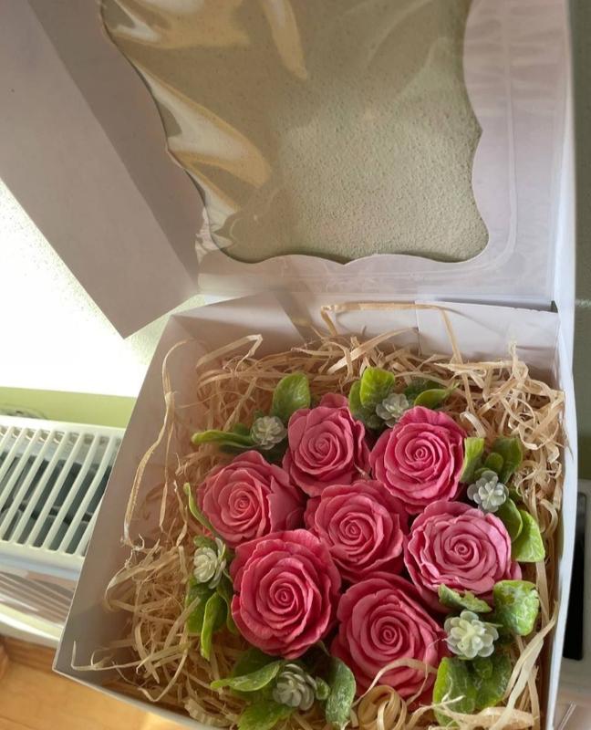 Мыльные розы в коробочке. Высота разы: 7 см, ширина: 5 см. В наборе 7 штук. Цвет: бледно-розовый. Размер коробки: 18 см - ширина, длина - 18 см, высота- 9 см Цены: 1 шт (упакована в коробке) - 100 грн 3 шт - 200 грн 5 шт - 350 грн 7 шт - 400грн Отправляем: новой по почте, укр-бытой, meestexpress. Мыльная роза подарочная - это нежно изготовленный ароматный подарок, который добавляет нотку романтики к любому событию. Она имеет форму реалистичной розы с натуральным ароматом розового мыла. Этот продукт идеально подходит в качестве подарка для торжественных событий, весель, дней рождения или просто для создания атмосферы уюта и релакса дома. Мыльная роза подарочная - это символ нежности и ухода, который может радовать глаза и дарить приятные ощущения.