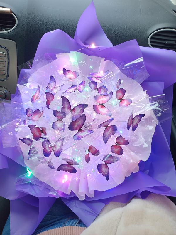 Вишукані букети для особливих моментів Наші букети – це не просто квіти чи декор. Це емоції, втілені в унікальних композиціях, створених з любов’ю та увагою до кожної деталі. Букет з квітів зі стрічок Це витвір мистецтва, де кожна квітка сформована вручну з ніжного атласу. Букет виглядає розкішно, зберігає форму та красу довгі роки. Ви можете обрати класичний варіант або додати метеликів як декоративний акцент. А гірлянда додасть легкого чарівного сяйва. Ціни (60 грн за 1 квітку): • 10 квіток – 600 грн • 15 квіток – 900 грн • 20 квіток – 1200 грн Букет з метеликів Ідеальний варіант для тих, хто шукає щось нестандартне. Метелики ніби оживають у руках, створюючи атмосферу ніжності й магії. Ціни (35 грн за 1 метелика): • 22 метелики – 770 грн • 35 метеликів – 1225 грн • 48 метеликів – 1680 грн • 60 метеликів – 2100 грн Додатково • Гірлянда для букета – +180 грн Перед замовленням Напишіть нам у приватні повідомлення – ми узгодимо всі деталі, кольори, декор та стиль.