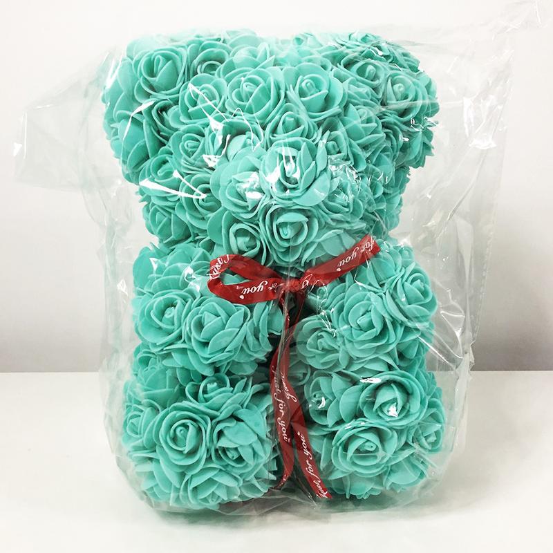 Лучший подарок: мишка из искусственных 3d роз 25 см. цвет: бирюзовый
