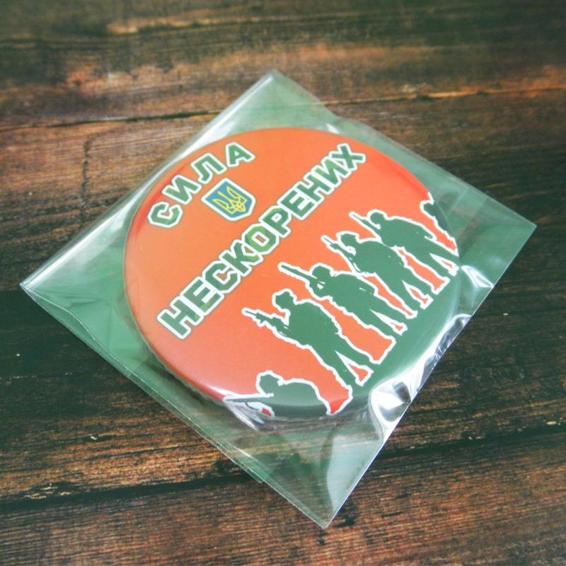 Магнит на холодильник закатной с бутылко-открывателем - "Сила Нескорених". Размер магнита - 56 мм в диаметре.