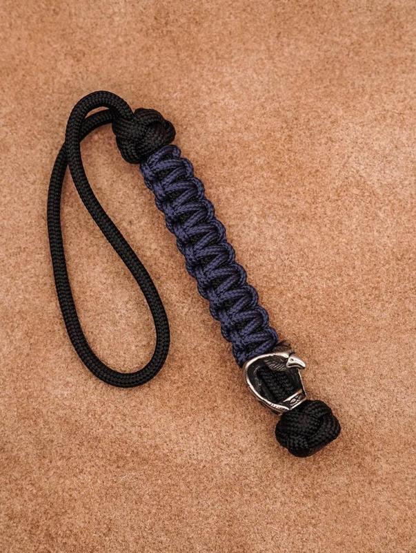 Темляк из паракорда на нож с бусиной птица из белой бронзы, 24см