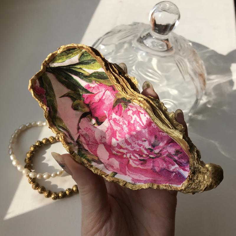 Handmade богемные пиалы-устрицы для хранения украшений, мелочей, пион