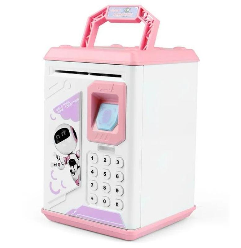 Электронный сейф копилка robot bodyguard с отпечатком пальца pink