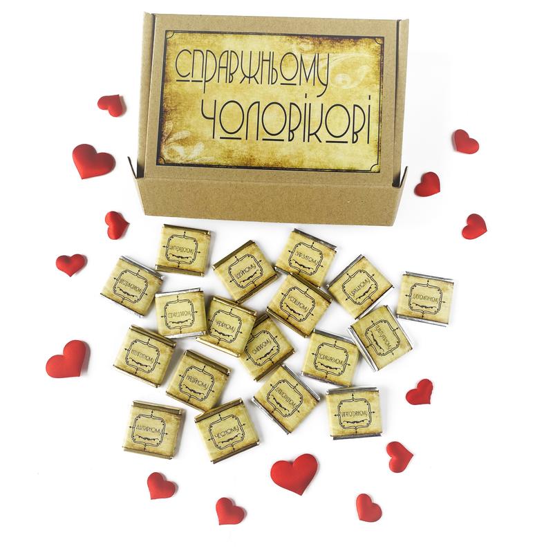 Дарите незабываемое наслаждение тем, кого цените больше всего — настоящим мужчинам! 💪 Наши наборы шоколада "Прежному Мужчине" - это идеальный подарок для тех, кто разбирается в сочетаниях вкуса и качества ☝️ Такой набор содержит 18 кусочков высококачественного бельгийского шоколада, 9 черных и 9 молочных 🍫, каждый из которых, в свою очередь, имеет тематическую обертку, наполненную теплыми словами, отражающими лучшие черты настоящего мужчины. Сбалансированный вкус черного и молочного шоколада добавляет вполне нового уровня удовольствия каждому кусочку 🤤 Отправляйтесь в путешествие по вкусу и нежности с нашими наборами шоколада "Справочному мужчине" - покажите дорогим вам мужчинам, насколько они важны для вас, с этим замечательным подарком! 🎁 ✔️ Доступны к заказу Укр и рос на языке. Арт. 00396(7)